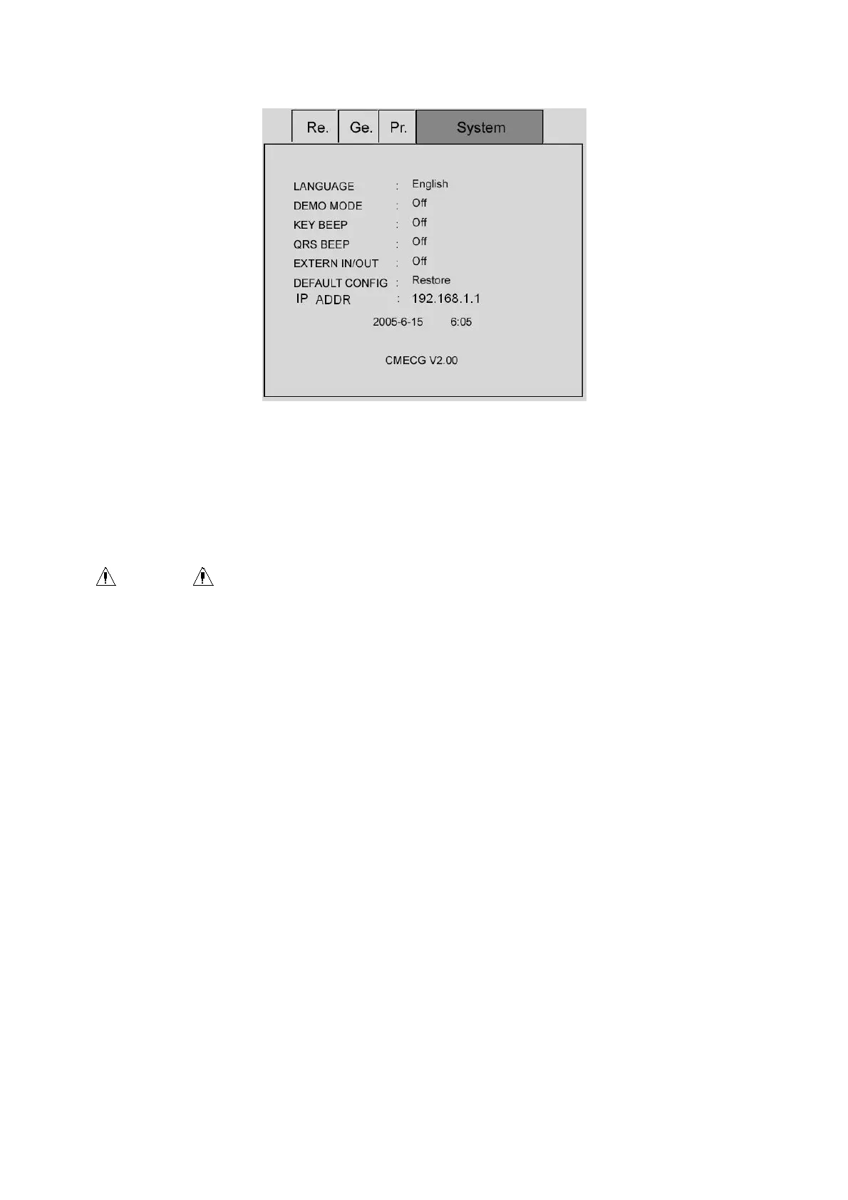 (1) LANGUAGE: The user can set the language set on the display screen in the electrocardiograph and the
