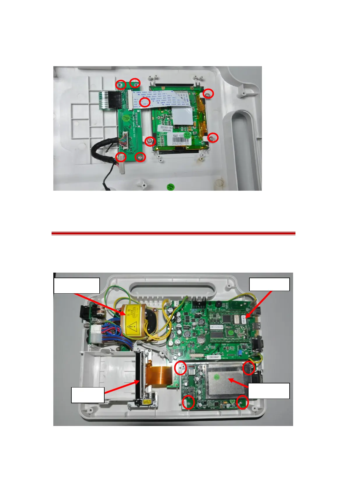 2. Separating ECG board (unplug the four PA3x8 screws.