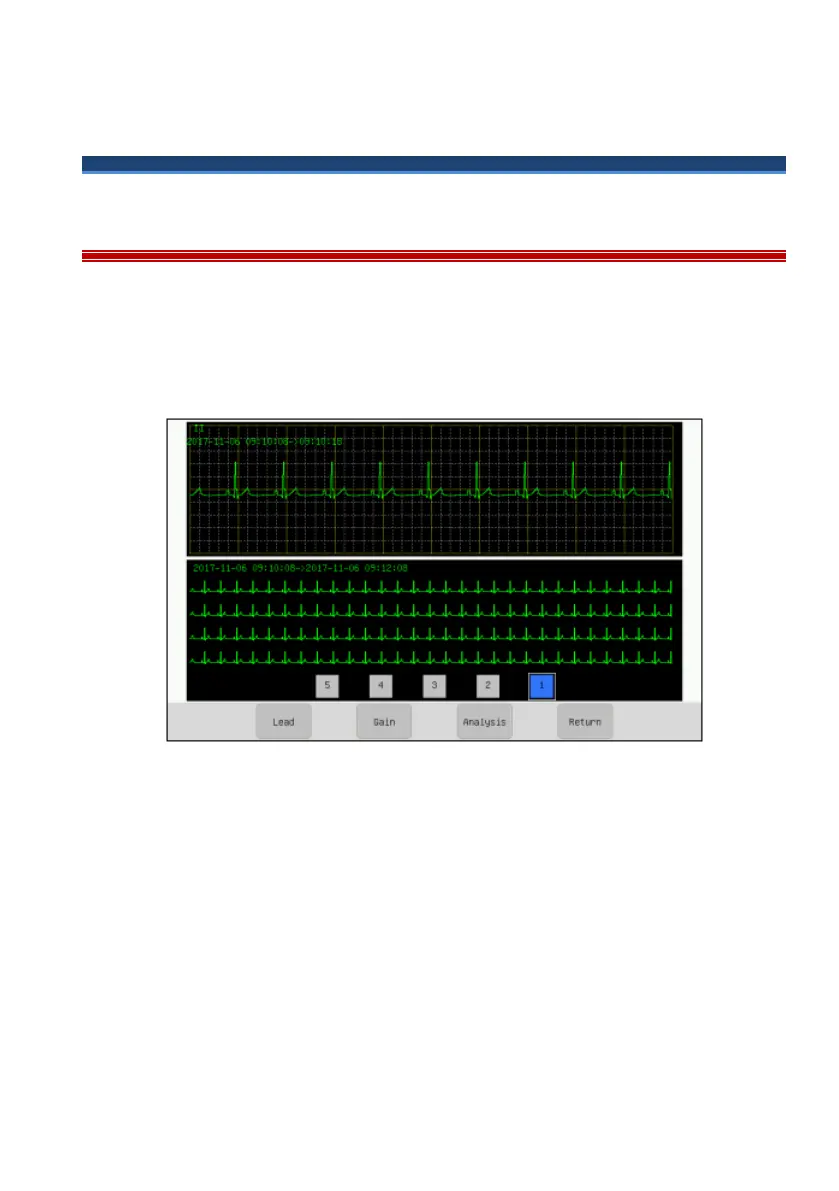 in the review screen. The 12-lead ECG can be reviewed, analyzed and printed in