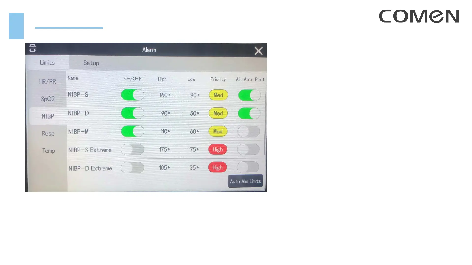 2. Set the High / Low limits for each alarm