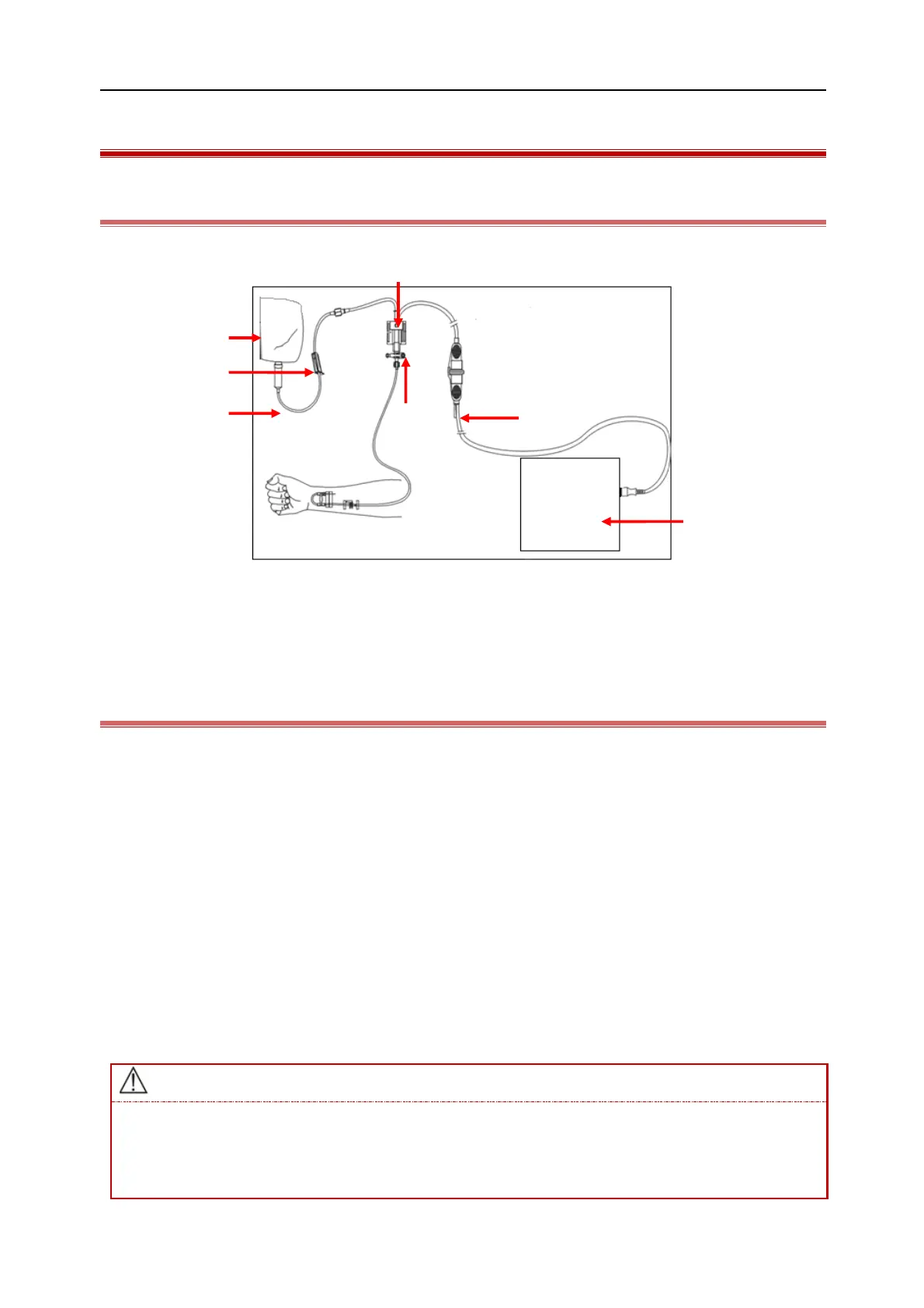 If there is any bubble in the pressure tube or sensor use the infusion solution to flush the system. Bubbles