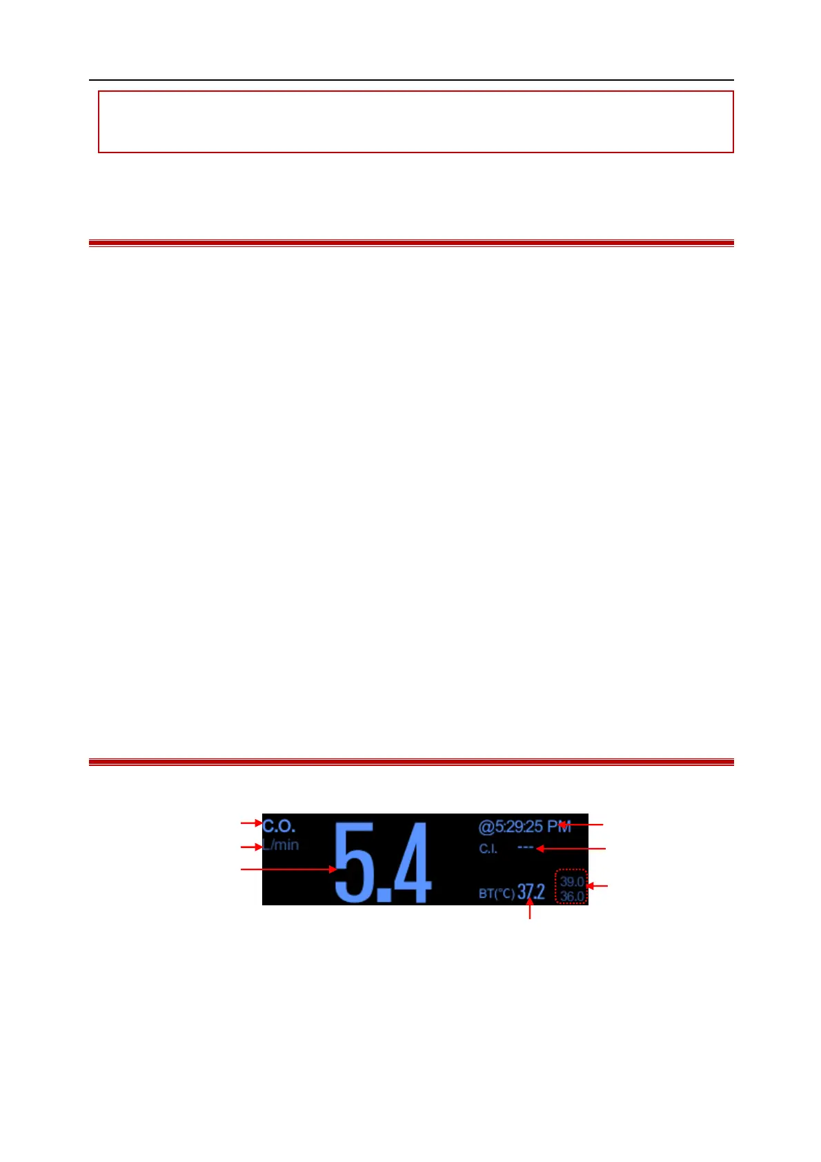 (4) Average time for C.O. calculation (5) C.O. index (6) Alarm limit of blood temperature