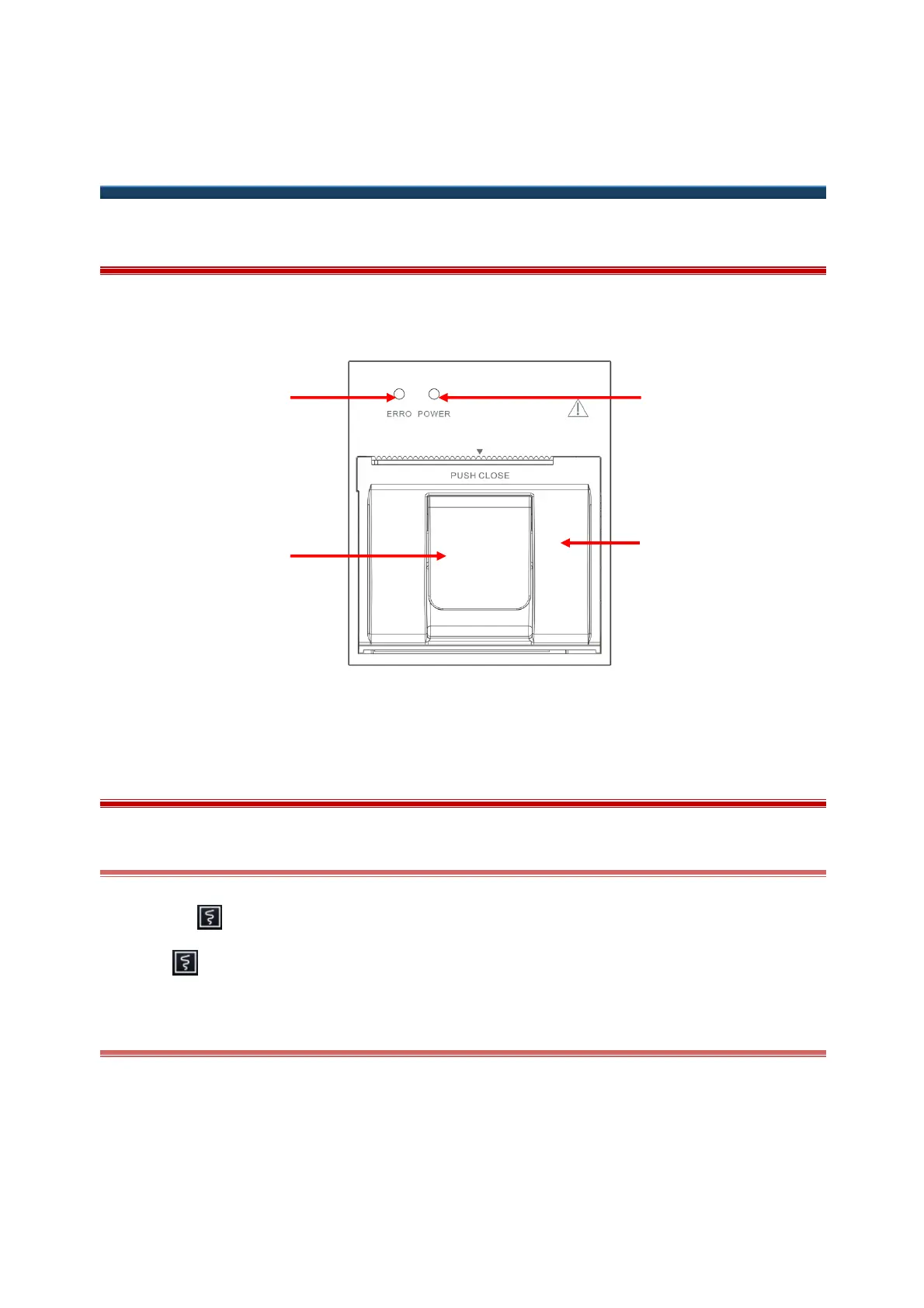 (1) Fault alarm light (2) On/Off latch lock (3) Recorder door (4) Power indicator