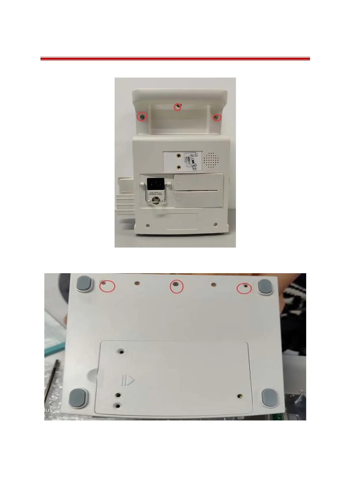 1. Unscrew the 3KM3.0×6.0mm screws at back side upper part;