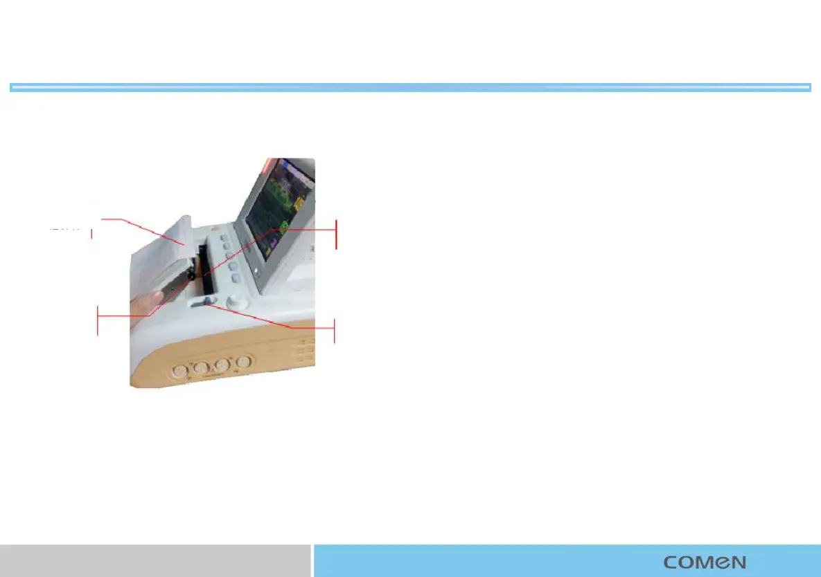 2. Put new record paper into paper slot with the grid side facing