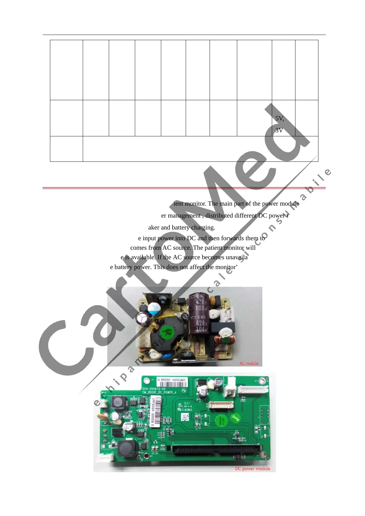 patient monitor. The input power comes from AC source. The patient monitor will run power from the AC