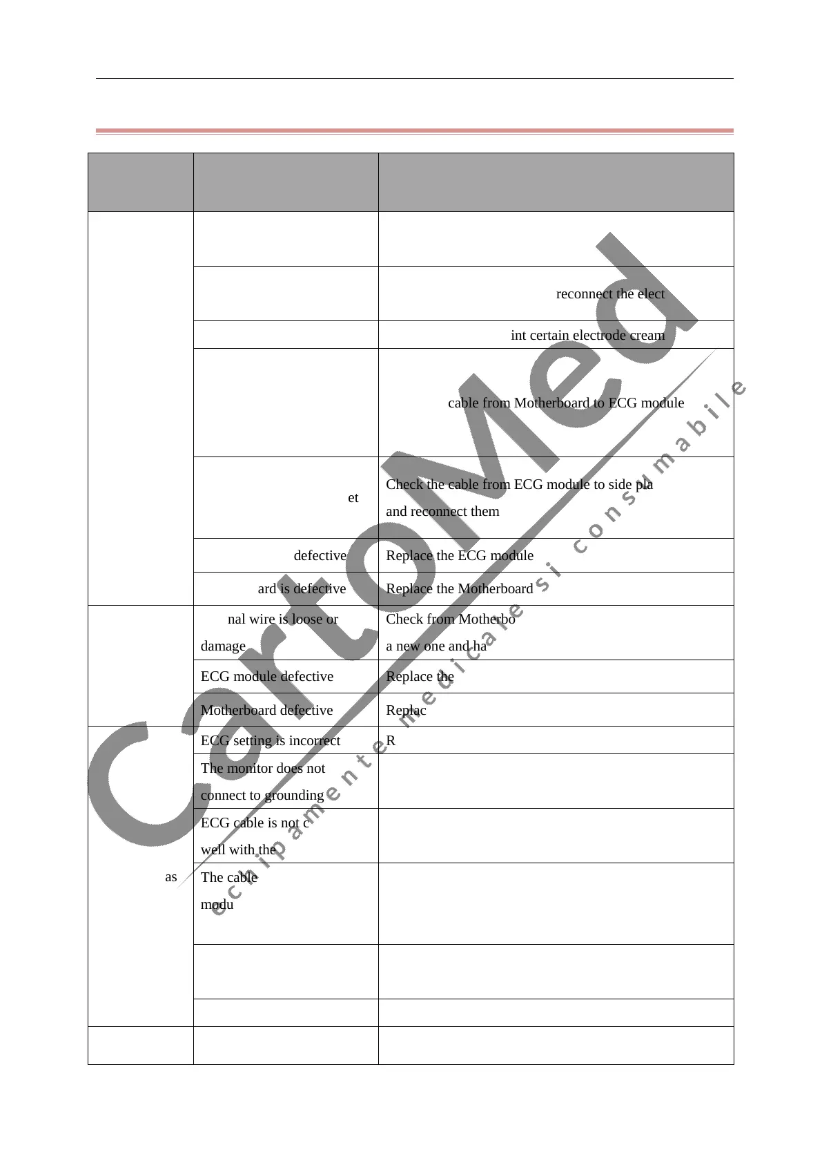 ECG module is defective Replace the ECG module