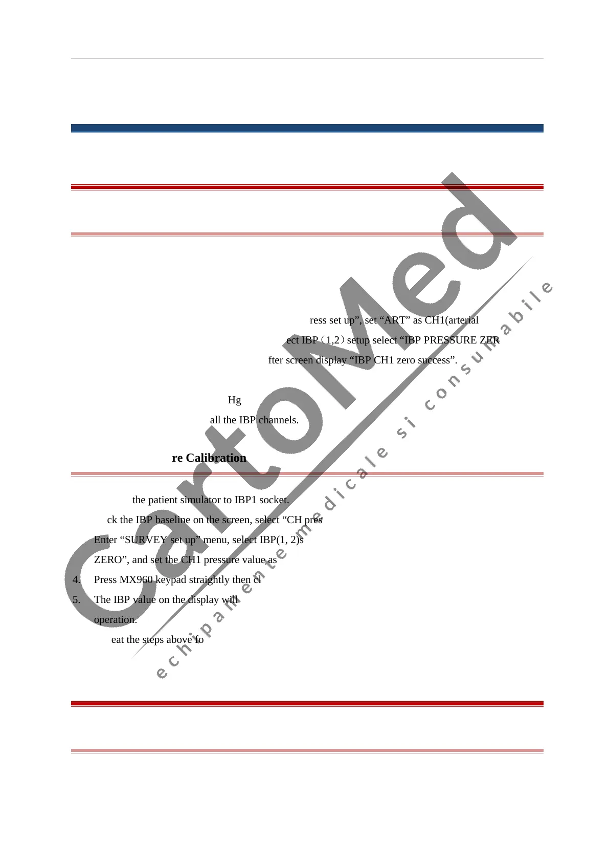 “CH1 ZERO”. Follow up the next step after screen display “IBP CH1 zero success”.