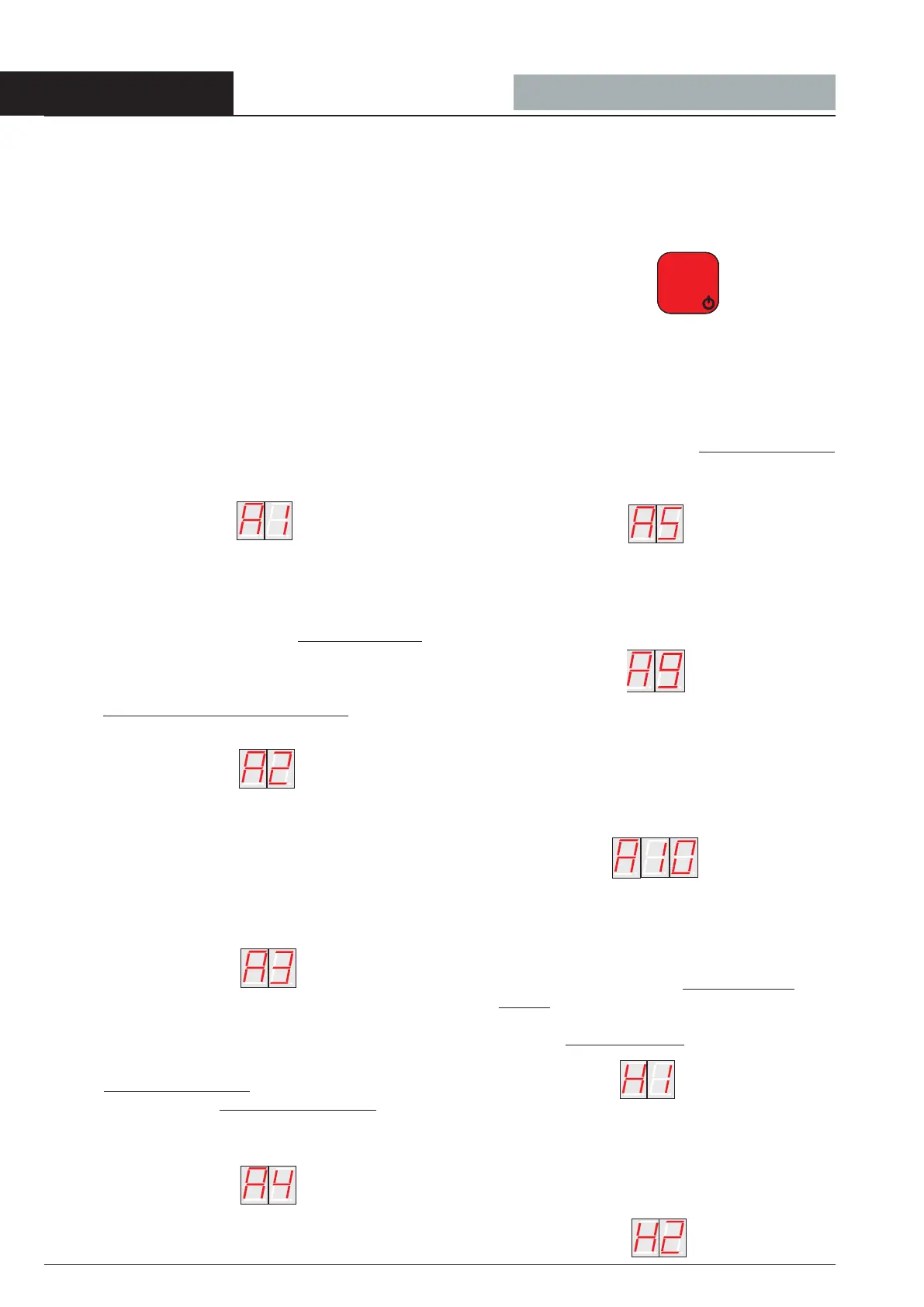 Las siglas de alarma y los avisos de las funciones activas en el display durante el funcionamiento de la máquina son: