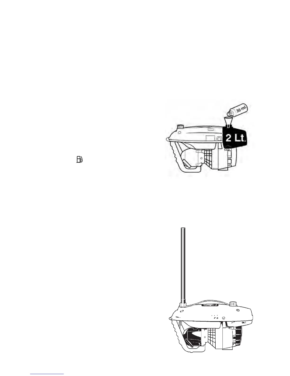 petrol into the tank through the rear inlet marked