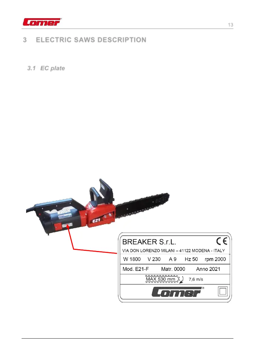Figure 1 – Identification label of the electric chain saws E21 – E23.