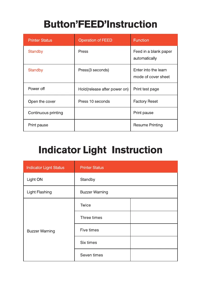 Comer RX106F - Printer Operation & Maintenance; Button and Indicator Instructions