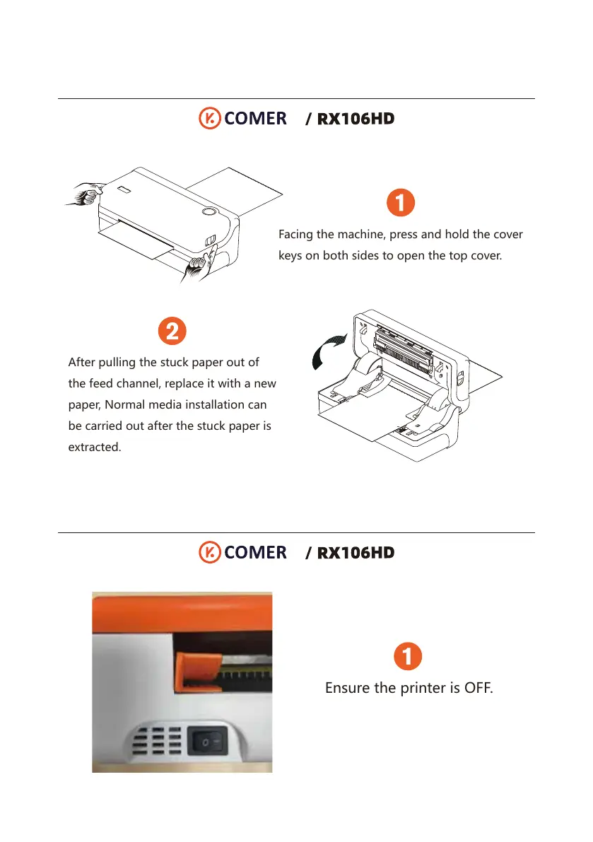 Comer RX106HD - Paper Jam; PRINTER SETUP