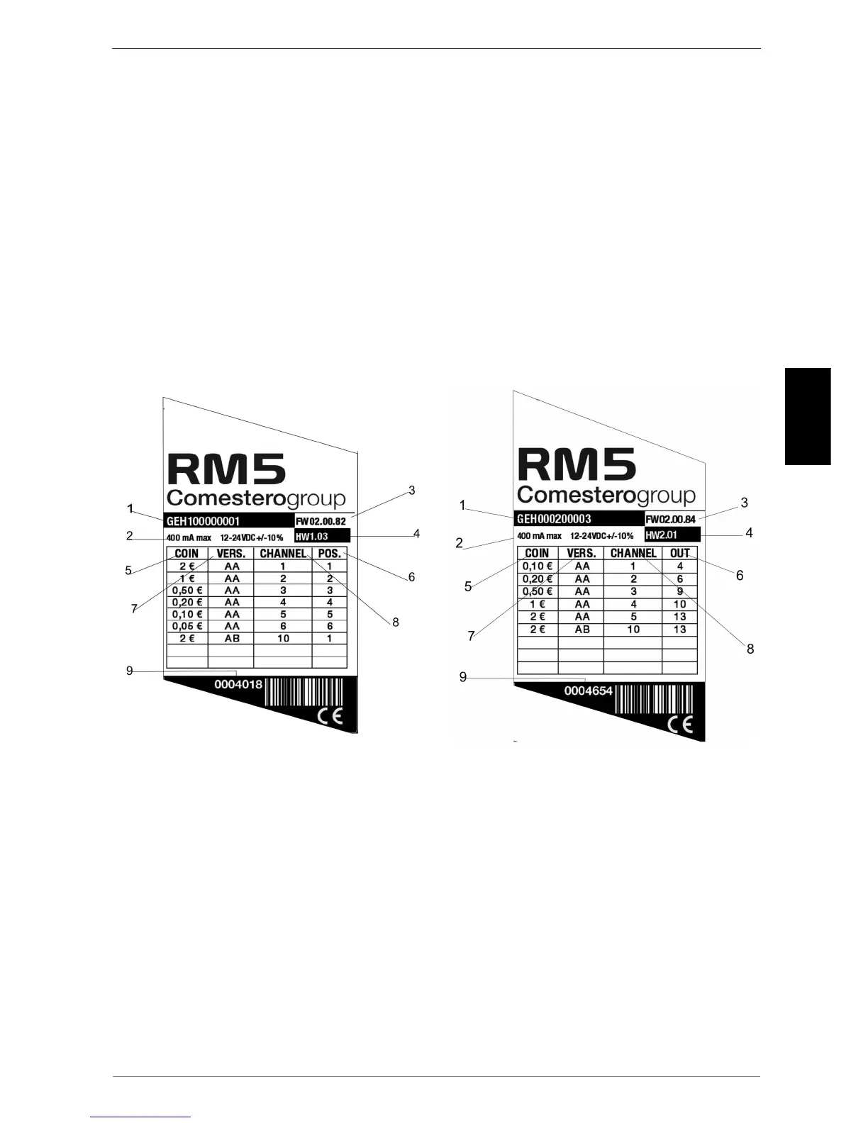 The figure shows the label affixed on the coin mechanism, which contains the main