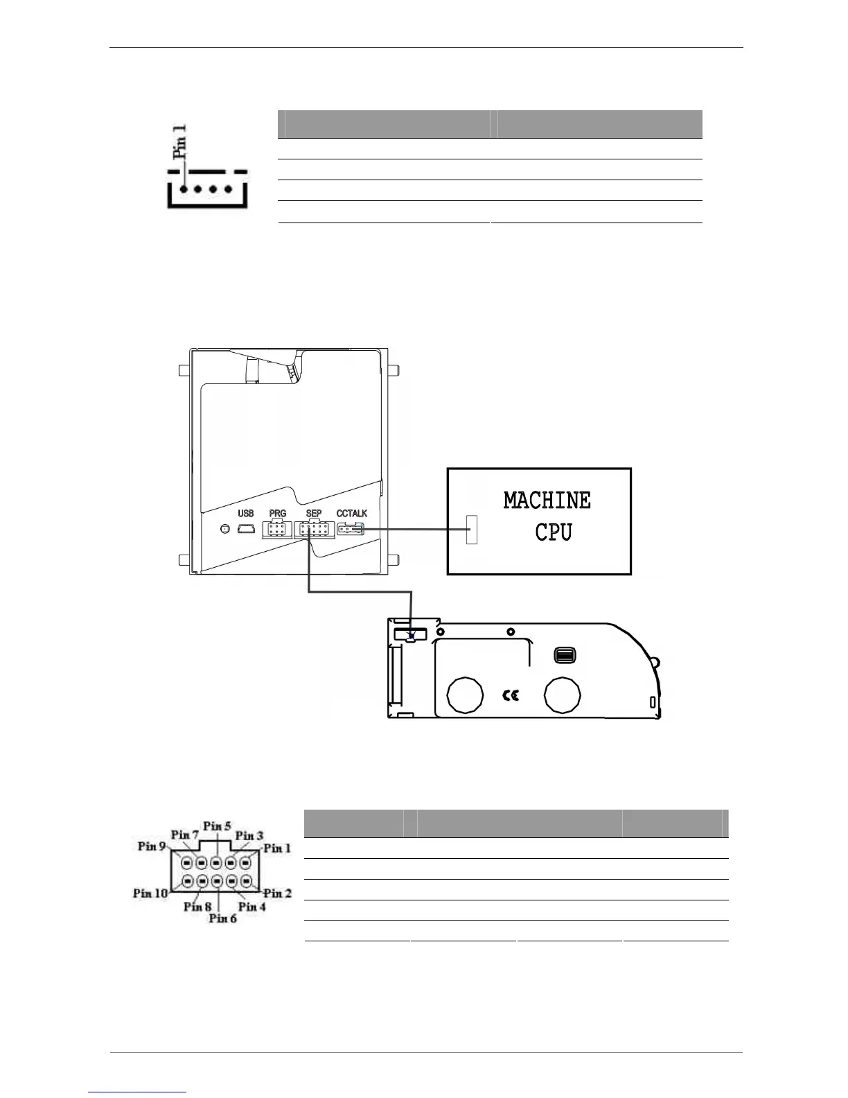 CPU by means of the (CN2) ccTalk connector and to the separator by means of (CN1)