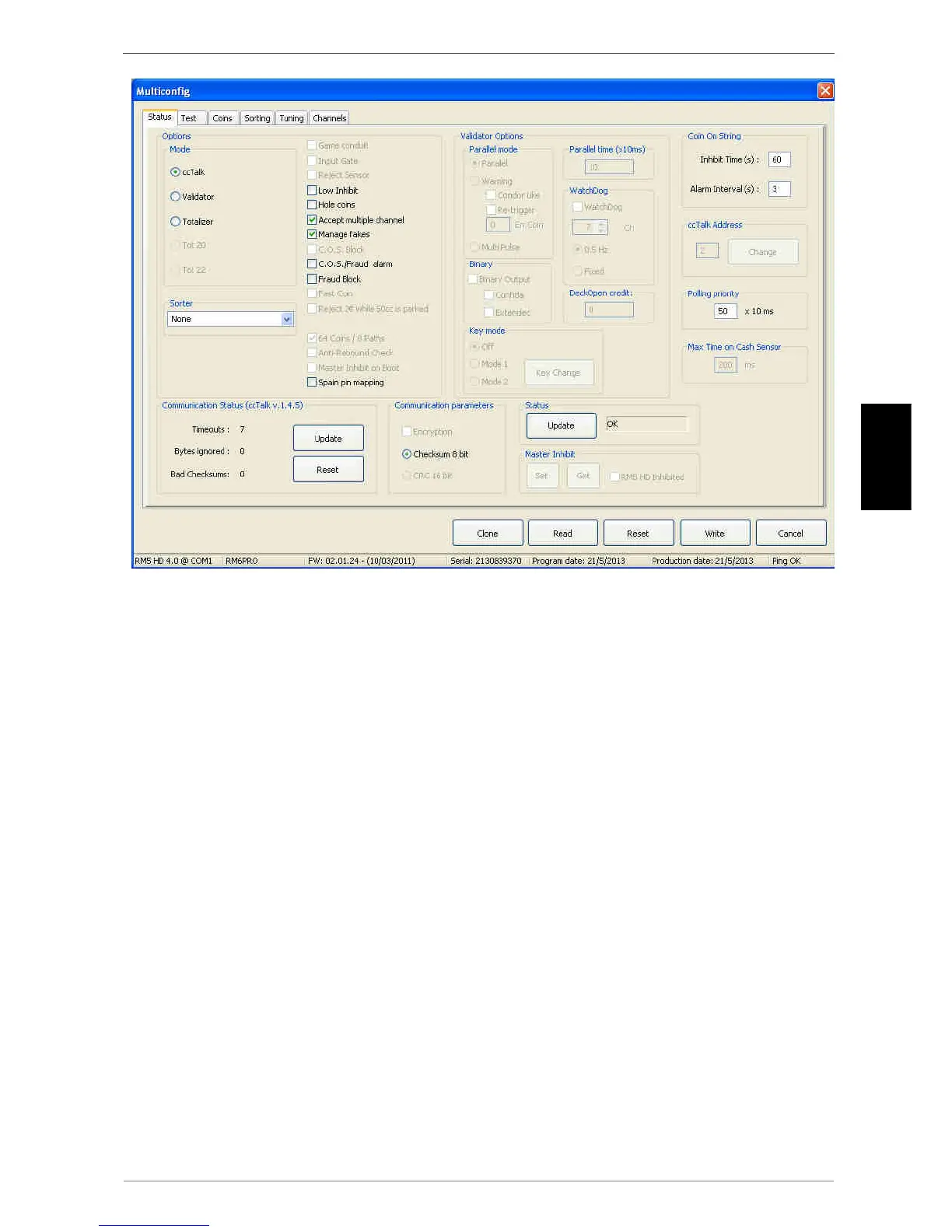 In ccTalk protocol validator configuration, RM5 HD can manage up to 16 different coin