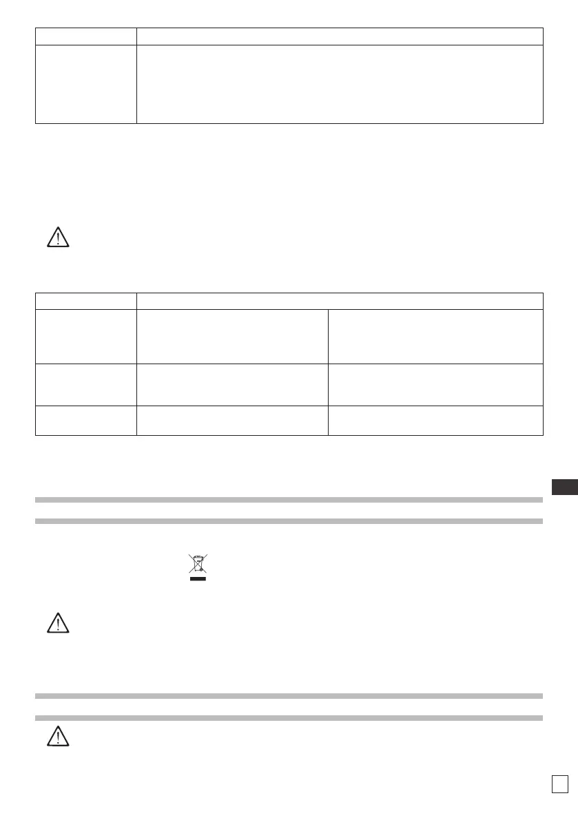 Houdt u bij buitengewoon onderhoud aan de aanwijzingen van onderstaande tabel.