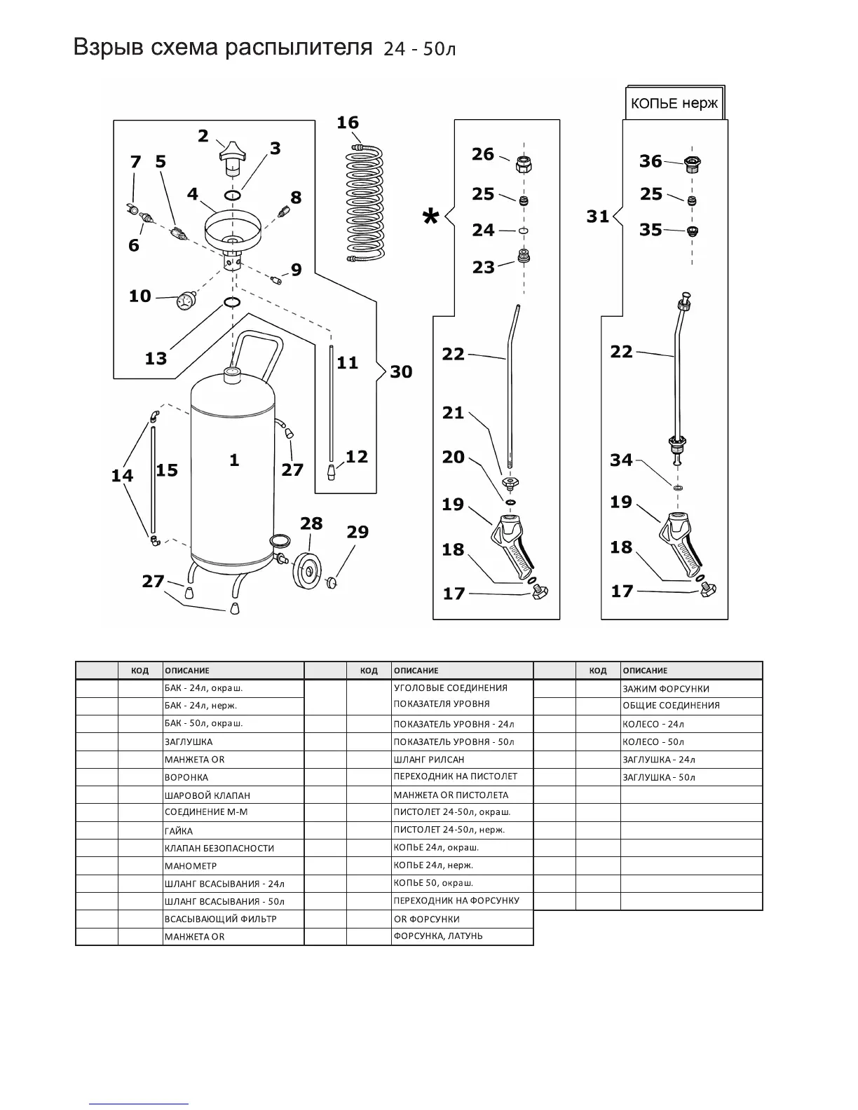 ВНИМАНИЕ: в качестве запчастей комплект пистолет-копье поставляется только в исполнении из нержавеющей стали