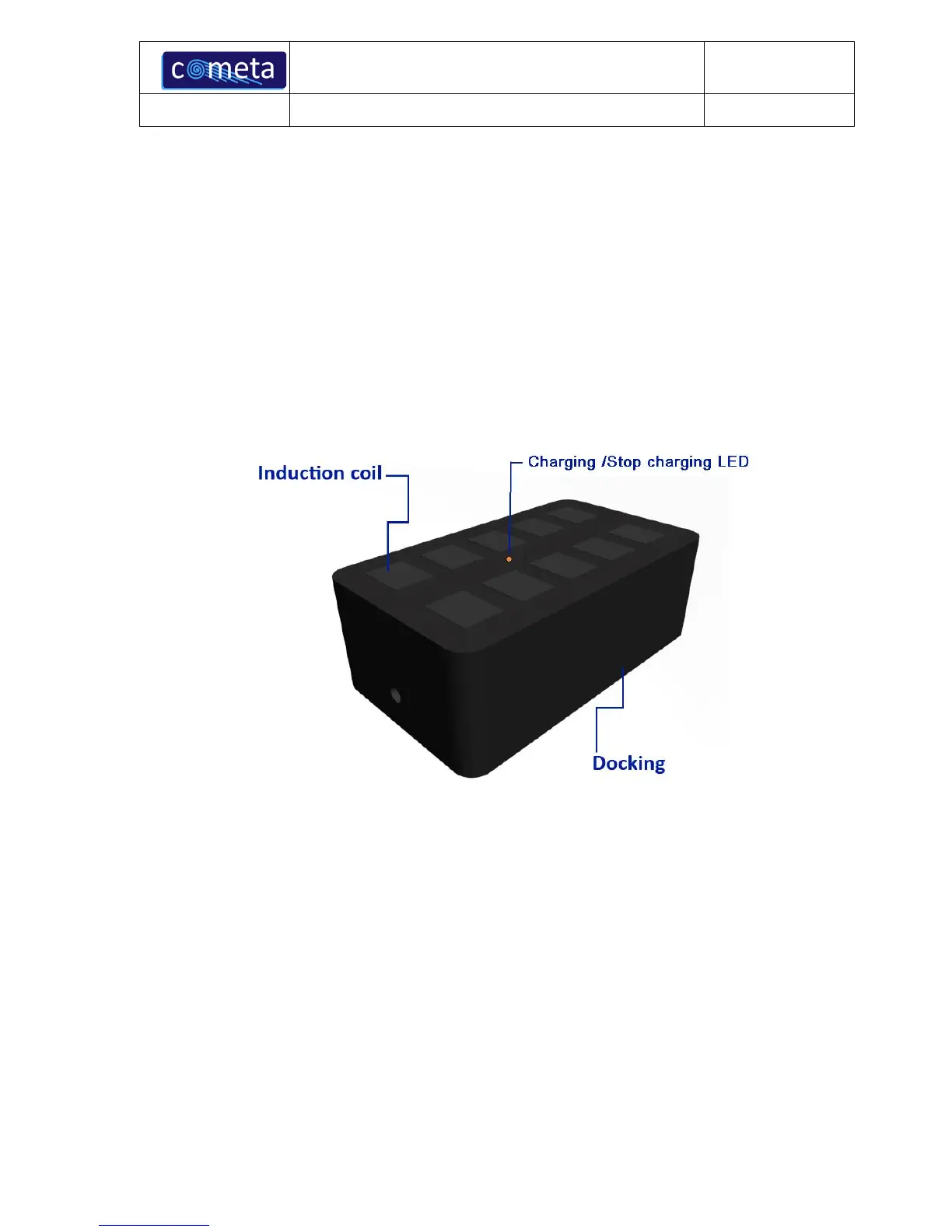 The docking module has a LED status indicator of the charger; during charging the LED is orange,