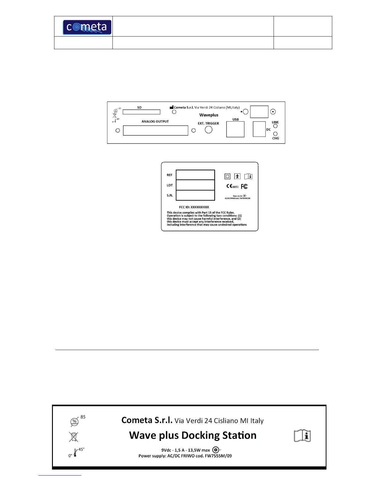 COMETA WAVE PLUS - LABELS AND IDENTIFICATION; Base Unit Label Details; Brief Case with Charger Label