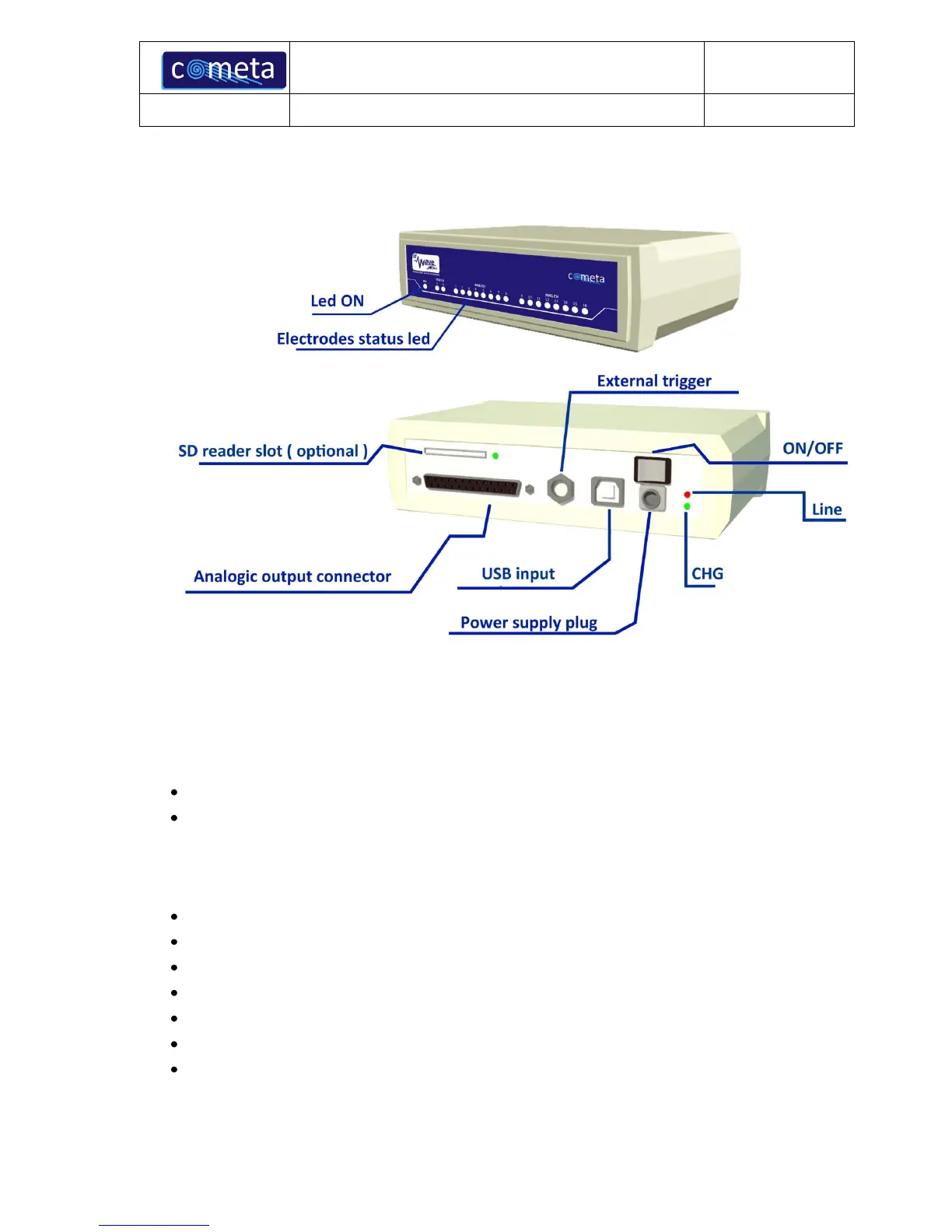 The front panel has also a further green LED indicating the on/off status of the base unit.