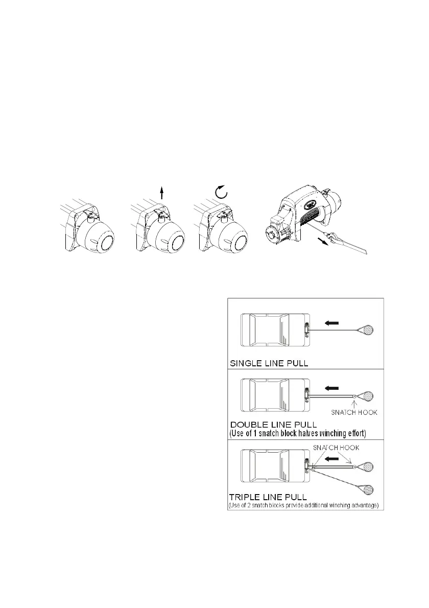 The free-spool T-handle must be in the “Engaged” position before winching.