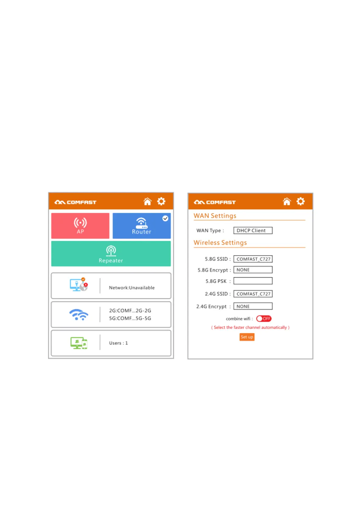 síťovým zařízením pro přístup k internetu. Název SSID bezdrátové sítě 2,4G / 5,8G