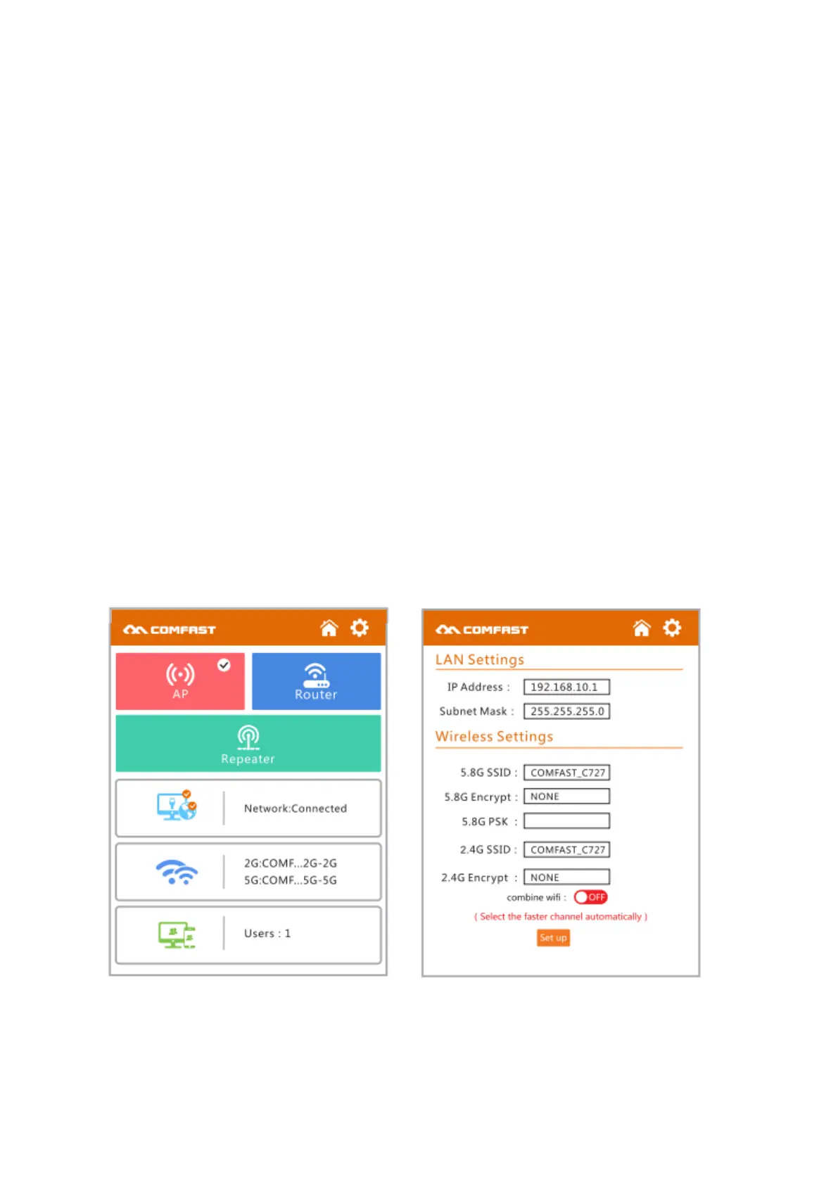 • AP módban beállíthatja a 2.4G / 5.8G vezeték nélküli SSID nevet és jelszót. A beállítás