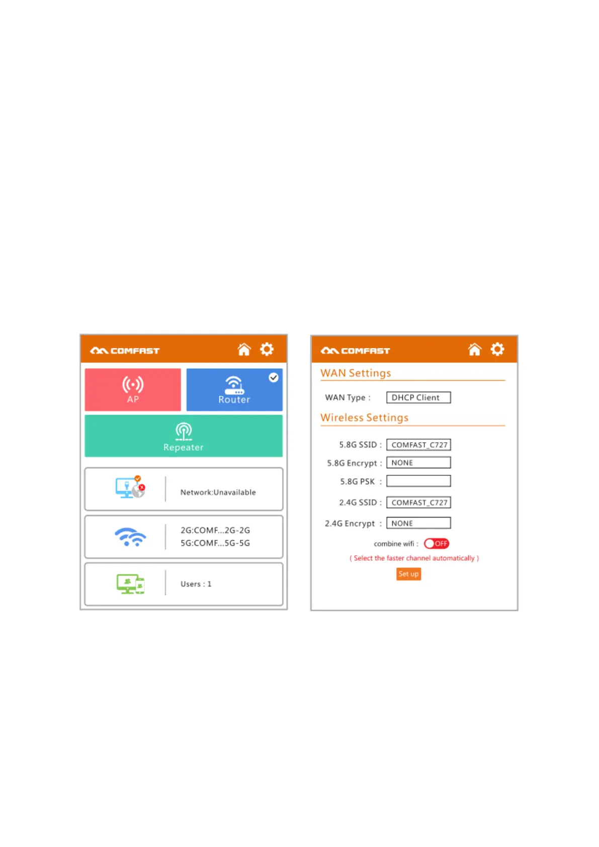 alábbiakban beállítható 2.4G / 5.8G vezeték nélküli SSID név, vezeték nélküli