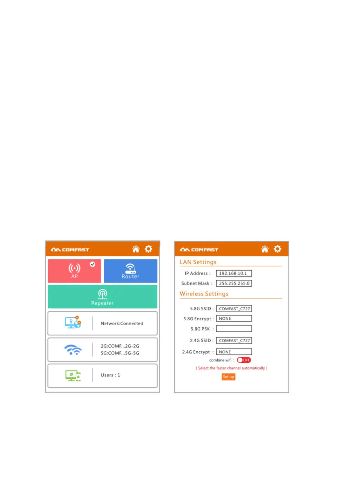 • En mode AP, vous pouvez définir le nom SSID sans fil 2.4G / 5.8G et le mot de passe.