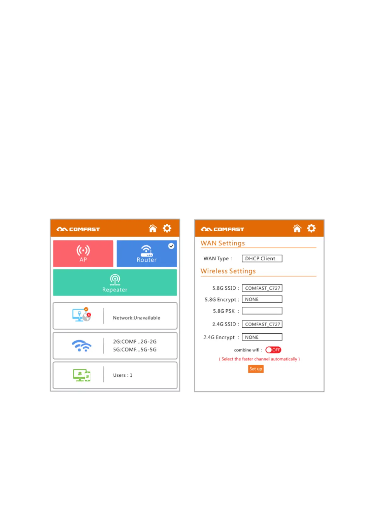 sans fil 2.4G / 5.8G peut être défini ci-dessous.