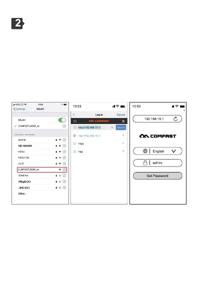 process, a red light is normal.) Connect wifi "COMFAST_XXXX_2G"