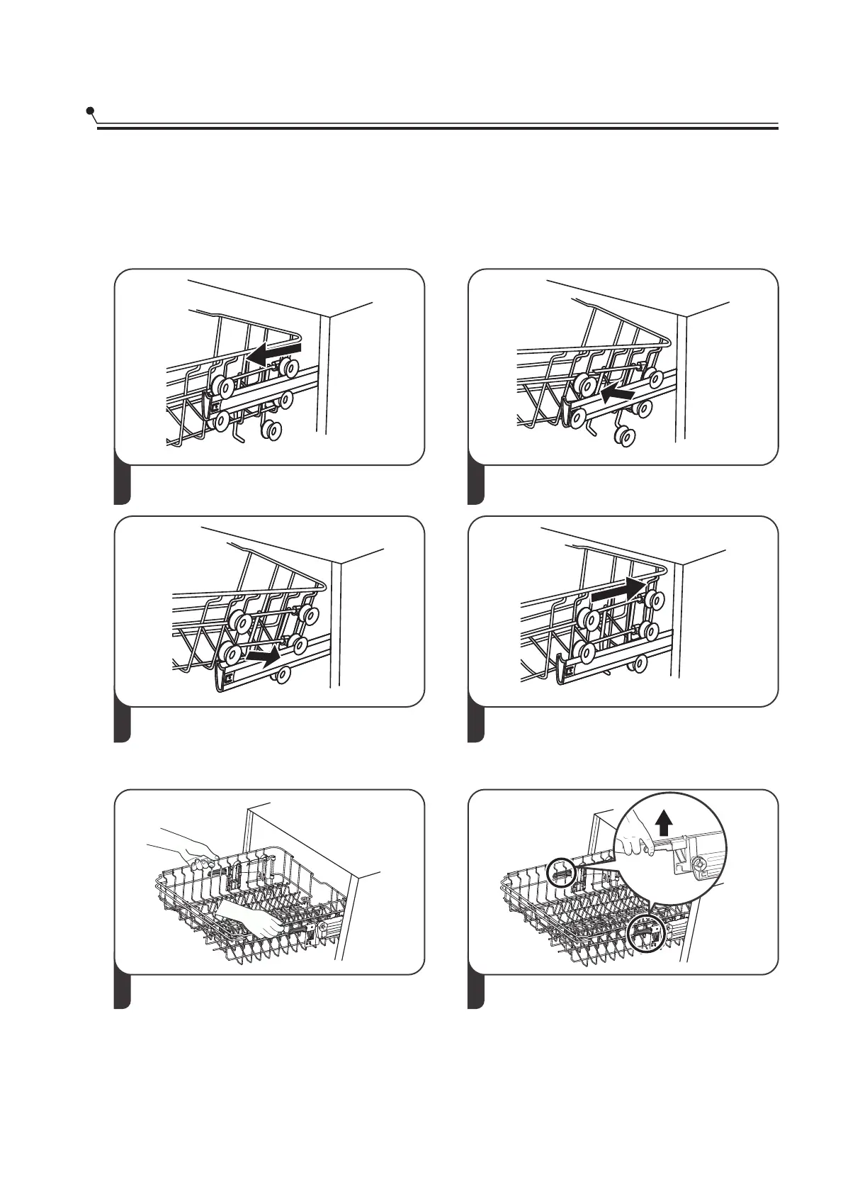 To adjust the height of the upper rack, follow these steps: