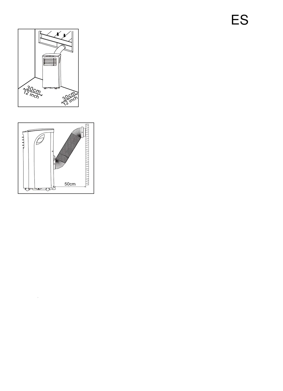 - La unidad debe estar ubicada a al menos 30 cm (12") de la pared más