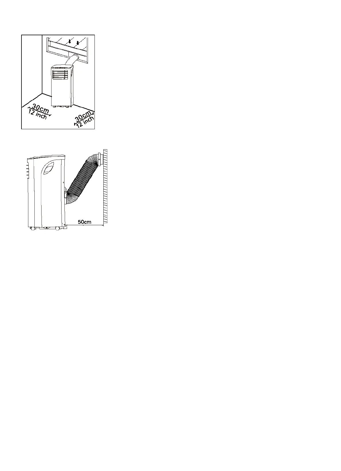 Uređaj se mora postaviti najmanje 30 cm (12″) od najbližeg zida kako bi se osigurao