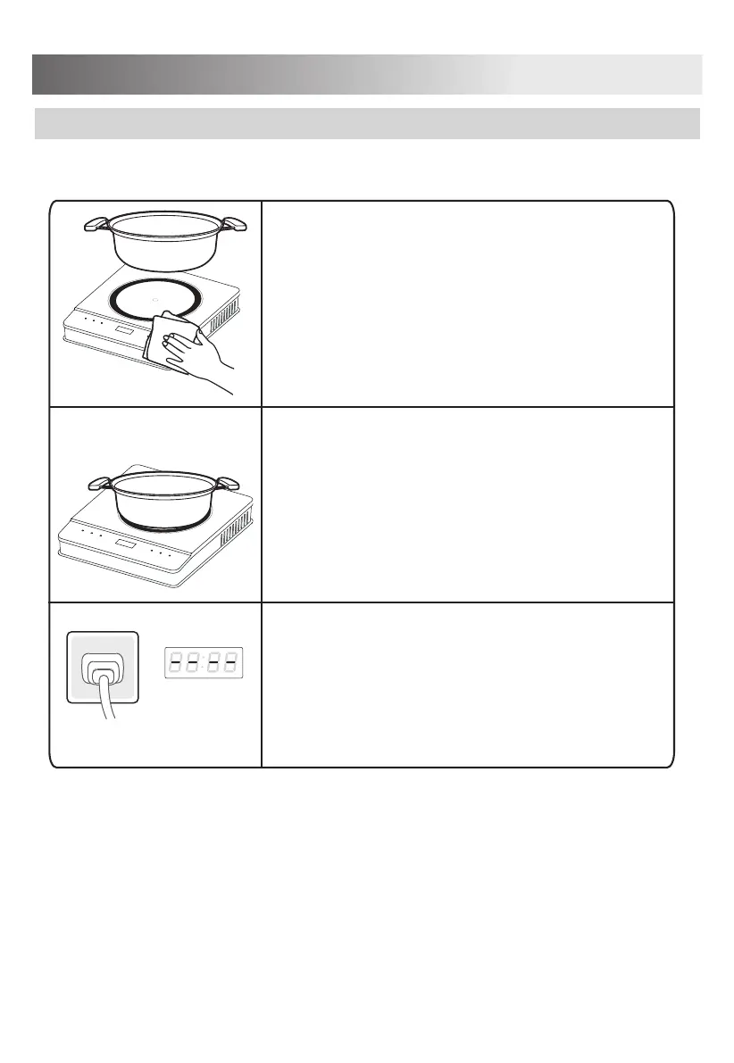 ① Clean the cookware and the induction cooker