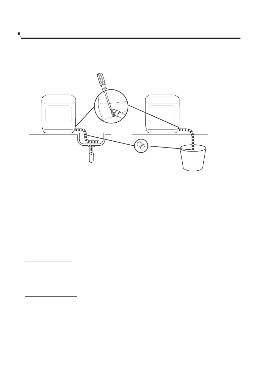The connection of the drain pipe: Put end of the drain into a sink or bucket.