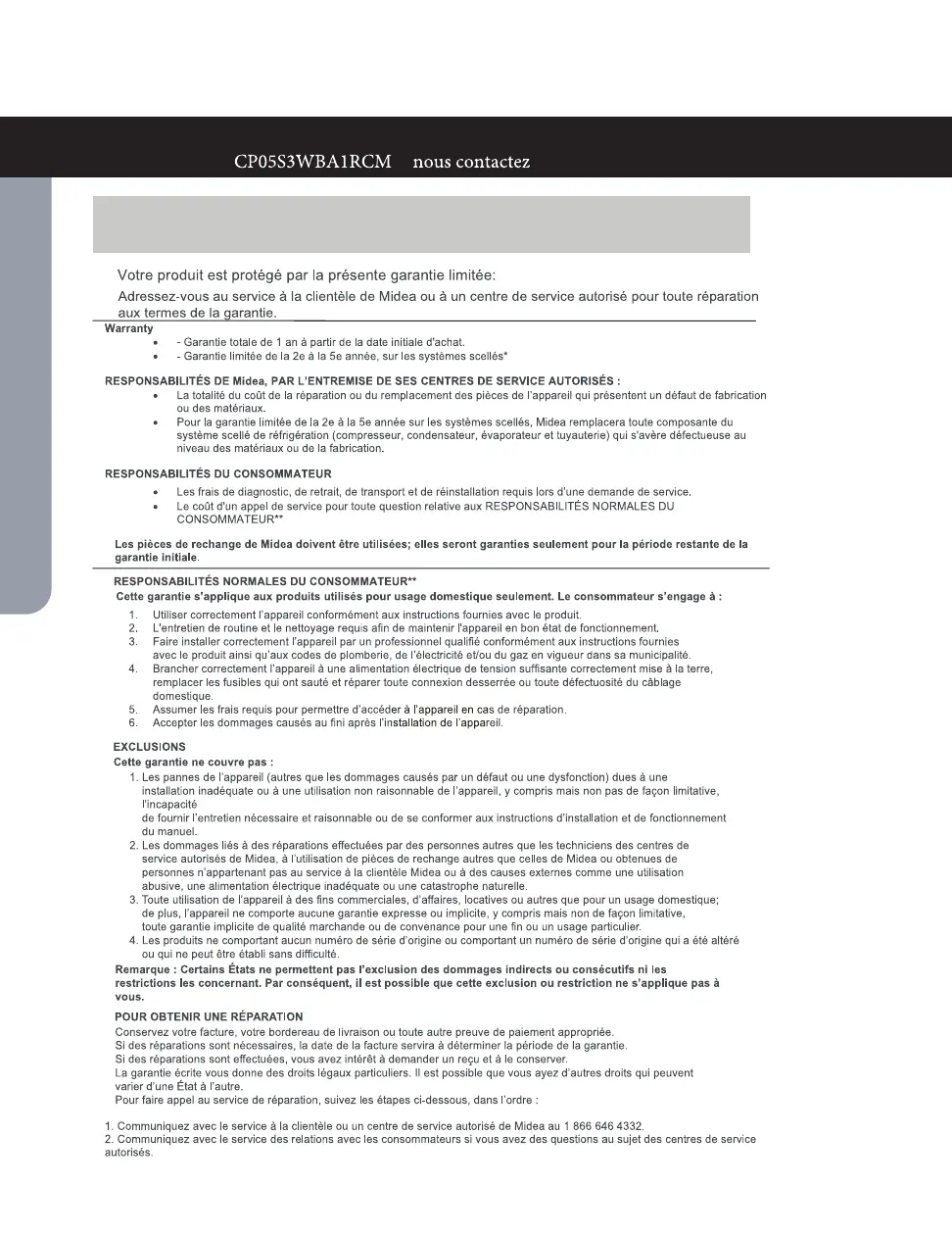 GARANTIE LIMITÉE POUR CLIMATISEUR
