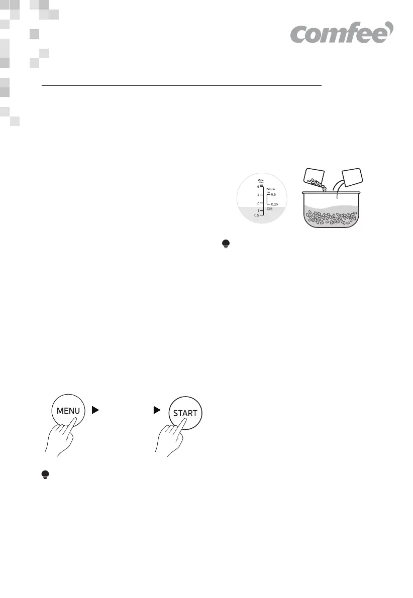 • Soak for two hours before using the function “GRAINS”.