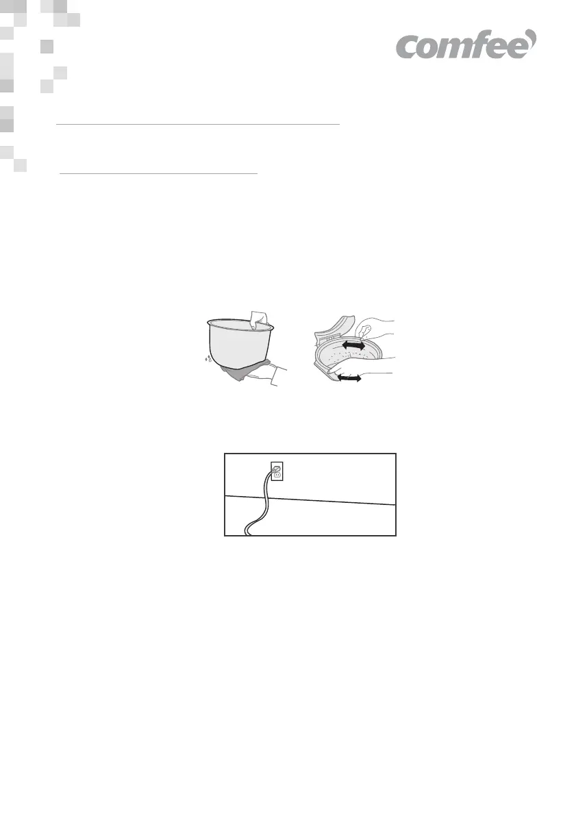 Wipe dry the exterior of cooking pot with cloth and place in the body; rotate