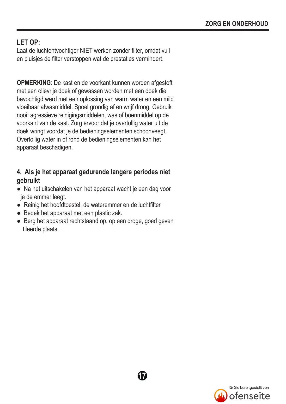 4. Als je het apparaat gedurende langere periodes niet