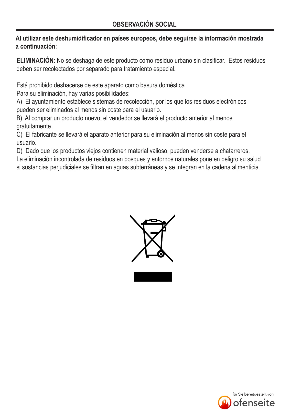 Está prohibido deshacerse de este aparato como basura doméstica.
