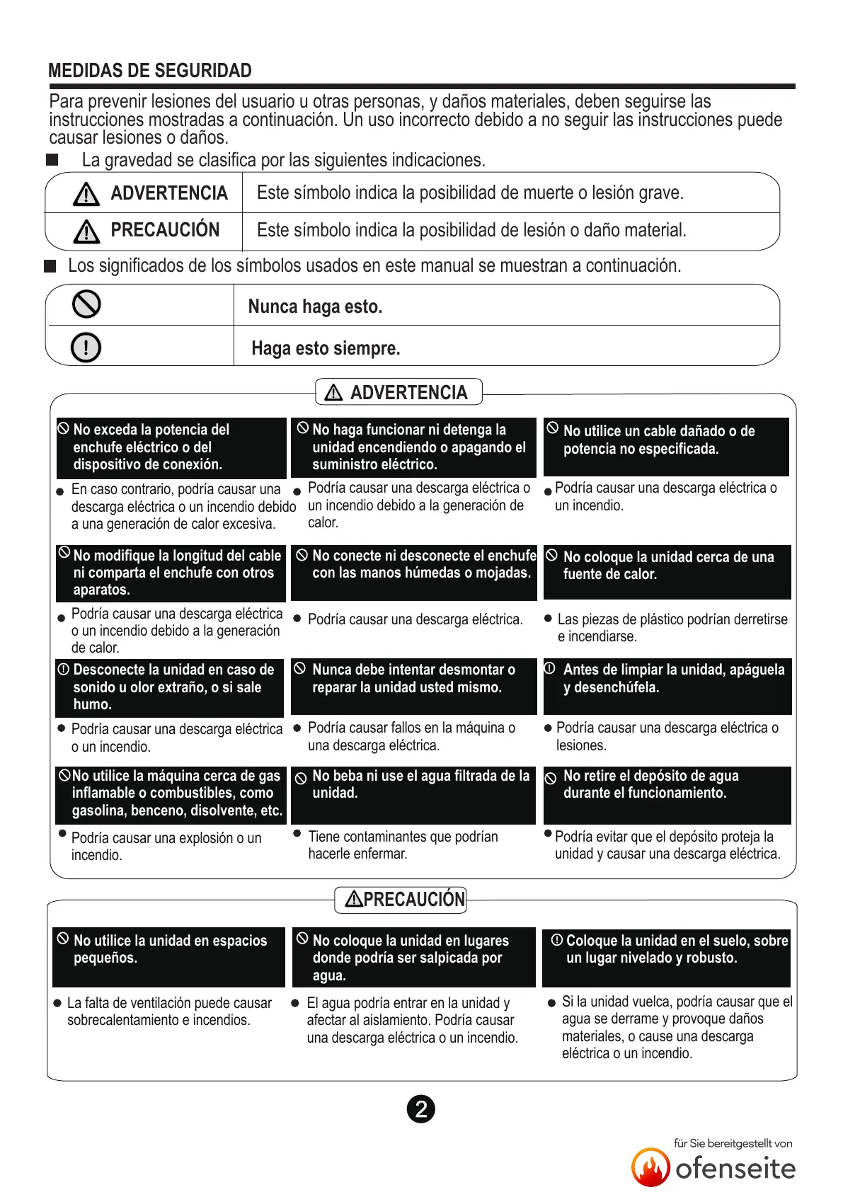 unidad y causar una descarga eléctrica.