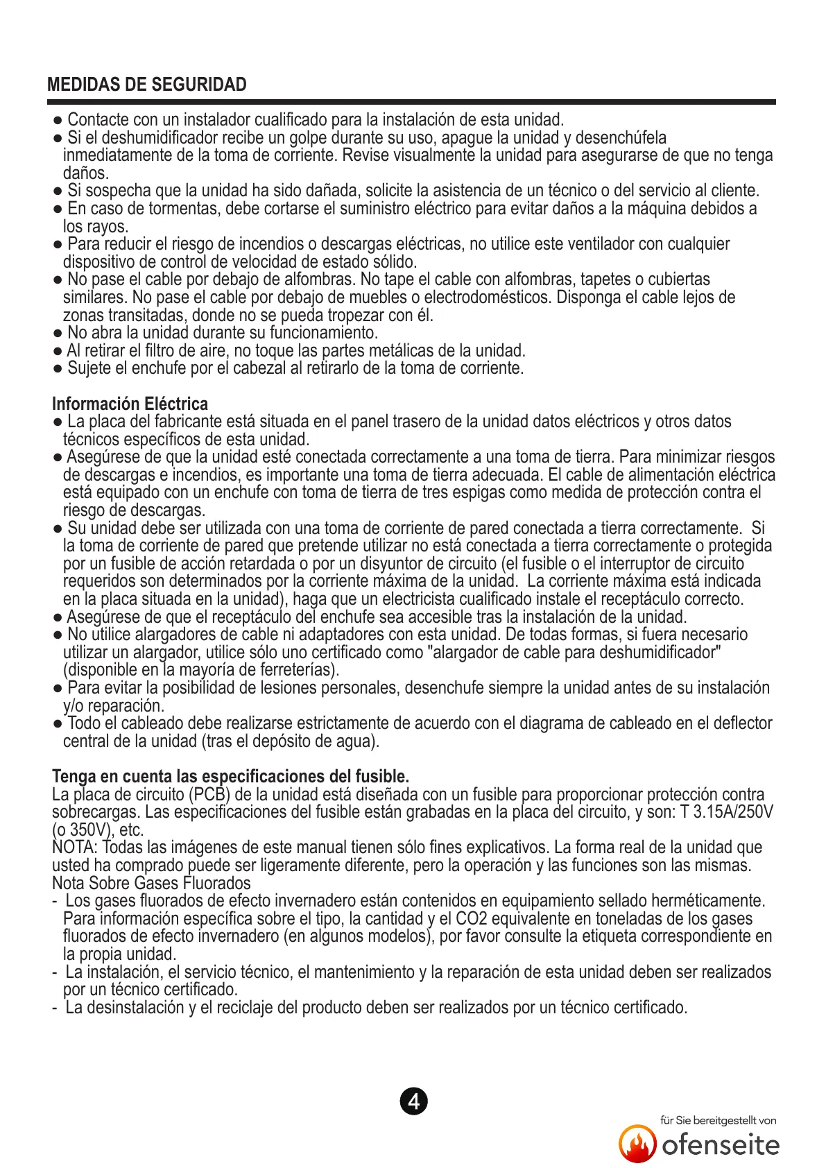 sobrecargas. Las especificaciones del fusible están grabadas en la placa del circuito, y son: T 3.15A/250V