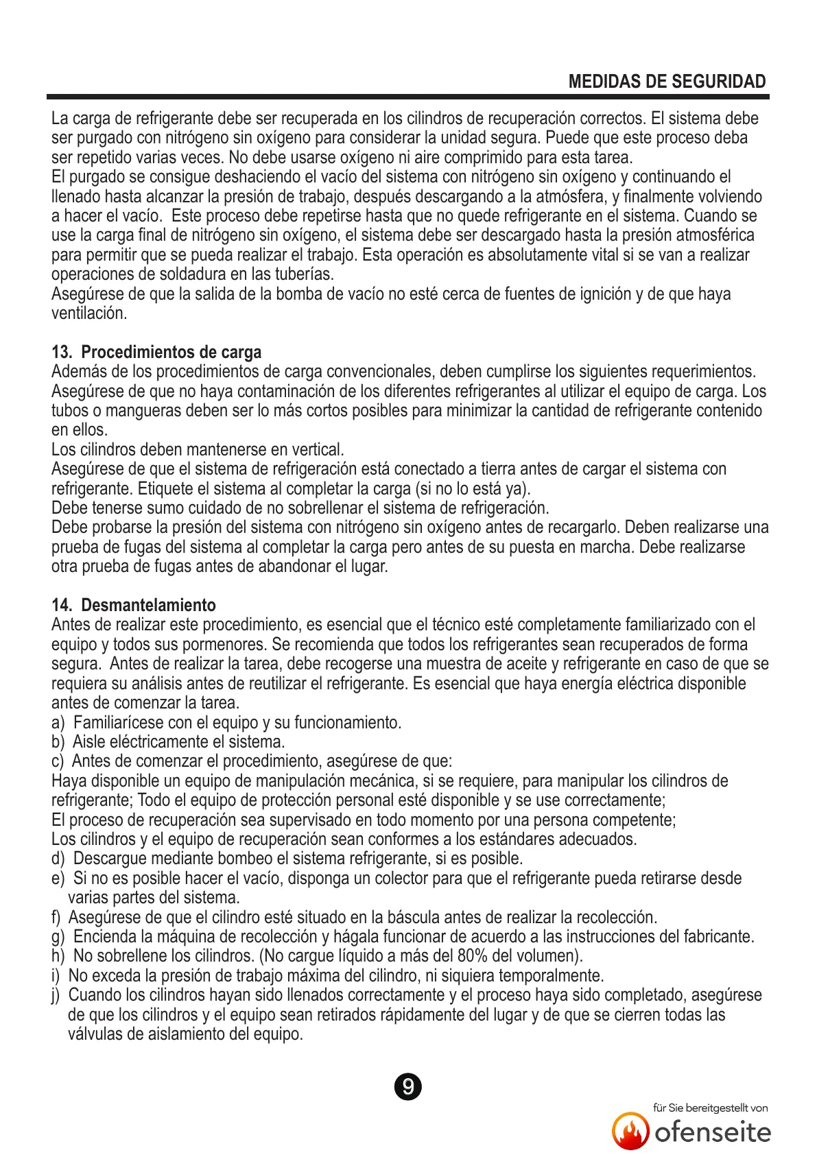 equipo y todos sus pormenores. Se recomienda que todos los refrigerantes sean recuperados de forma