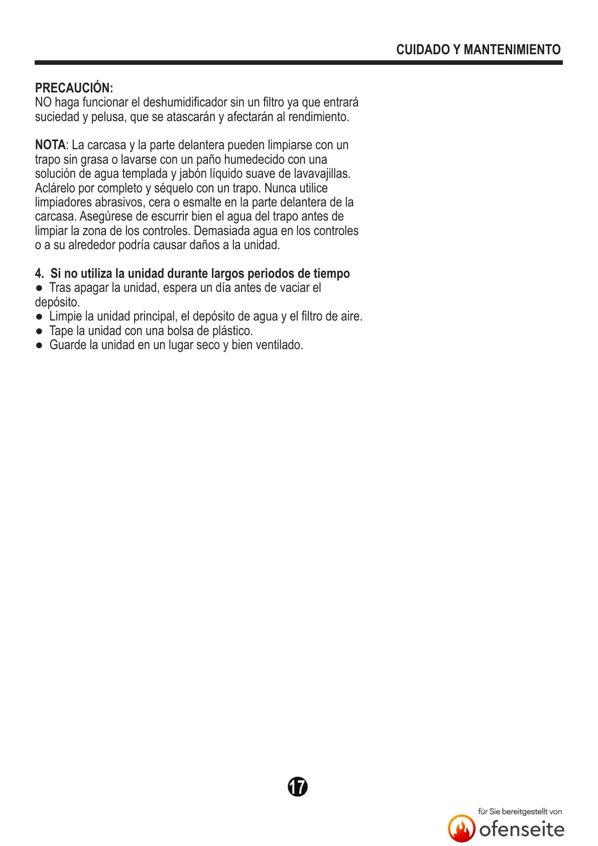 4. Si no utiliza la unidad durante largos periodos de tiempo
