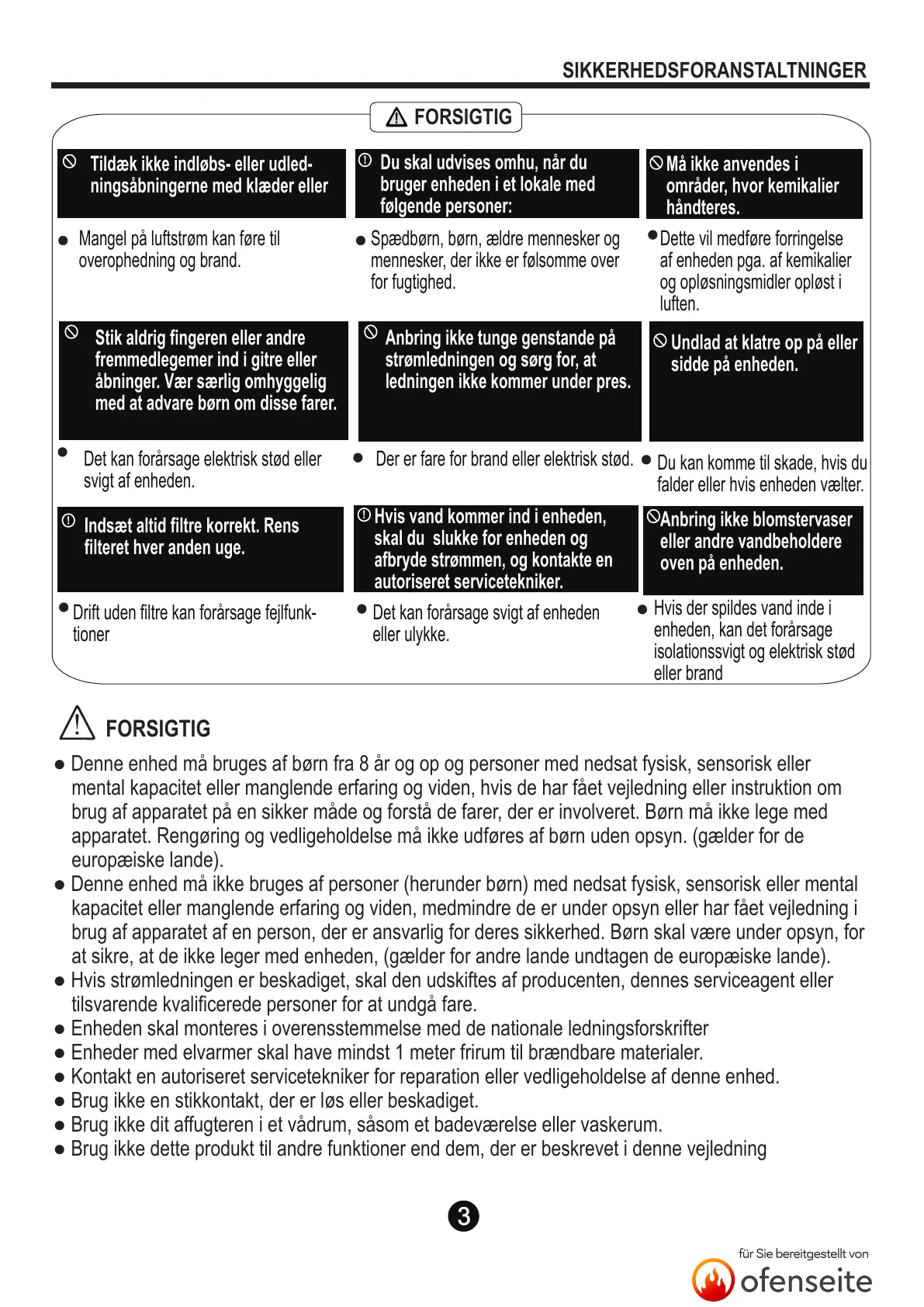 ● Denne enhed må bruges af børn fra 8 år og op og personer med nedsat fysisk, sensorisk eller