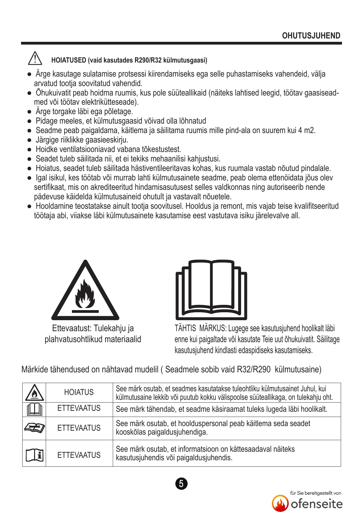 HOIATUSED (vaid kasutades R290/R32 külmutusgaasi)