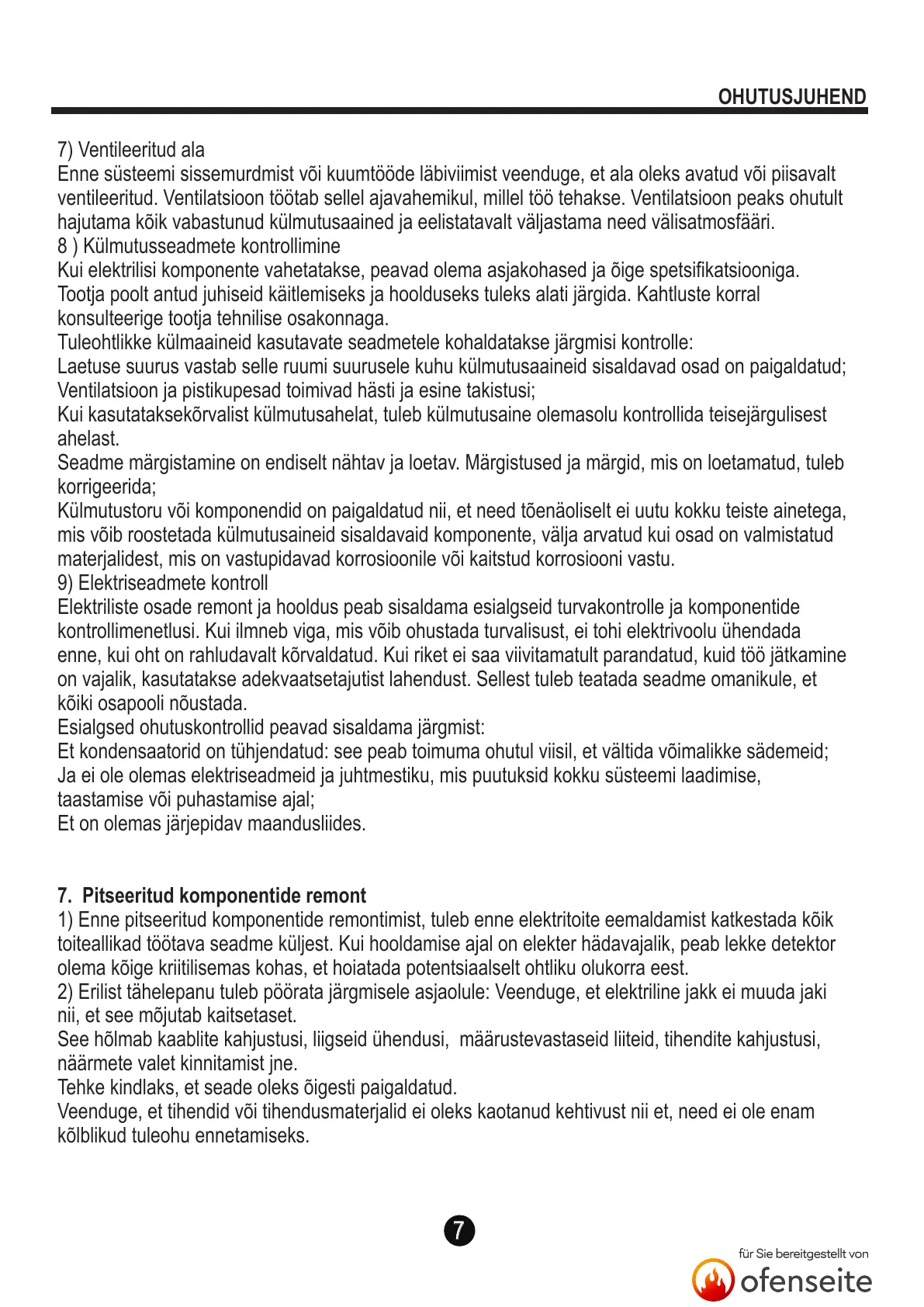 mis võib roostetada külmutusaineid sisaldavaid komponente, välja arvatud kui osad on valmistatud