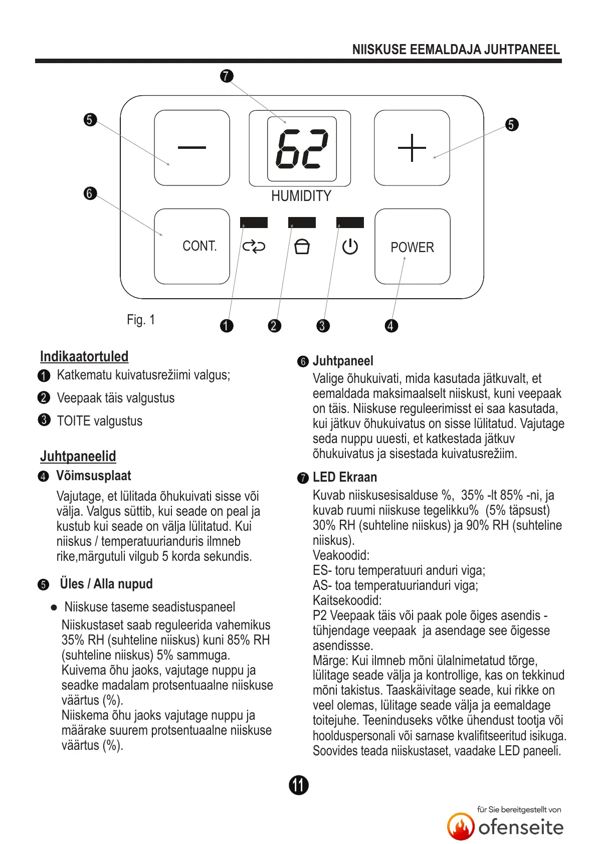 Soovides teada niiskustaset, vaadake LED paneeli.